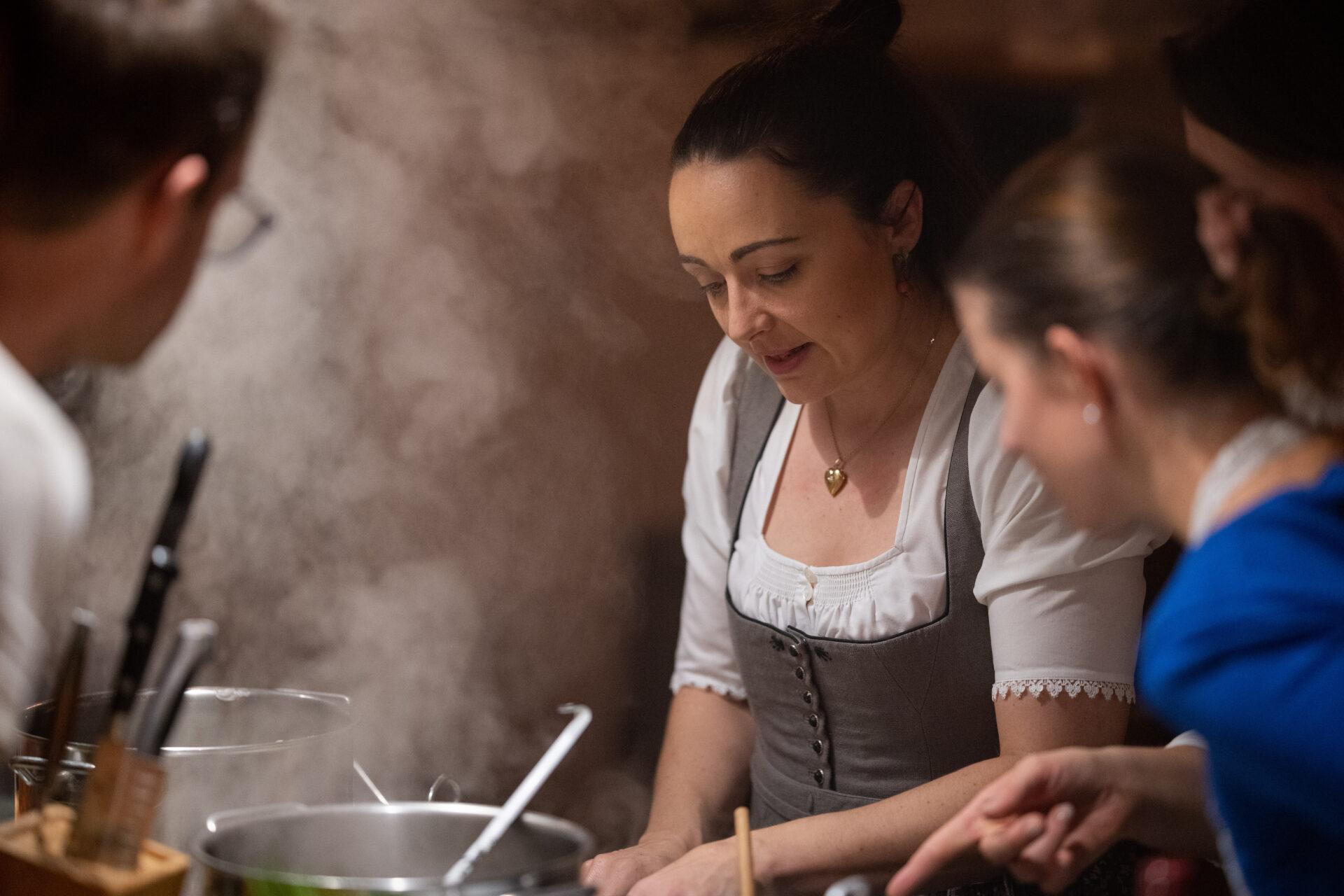 Ob bei den „offenen Kochabenden“ oder bei exklusiv gebuchten Gruppen für FreundInnen, KollegInnen oder in der Familie, hier gibt´s den 100%igen Einblick in die Wirtshauskuchl, ein Erlebnis!